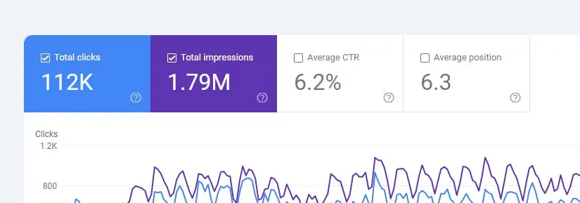 میانگین نرخ کلیک (Average CTR): عدد ۶.۲٪ نشان میدهد که محتوای این سایت تا چه حد برای کاربران جذاب بوده است. در واقع تمرکز روی افزایش ctr در سئو یکی از هوشمندانهترین راهها برای جذب ترافیک بیشتر است؛ چرا که به گوگل ثابت میکند سایت شما دقیقاً همان چیزی است که کاربر به دنبالش میگردد.